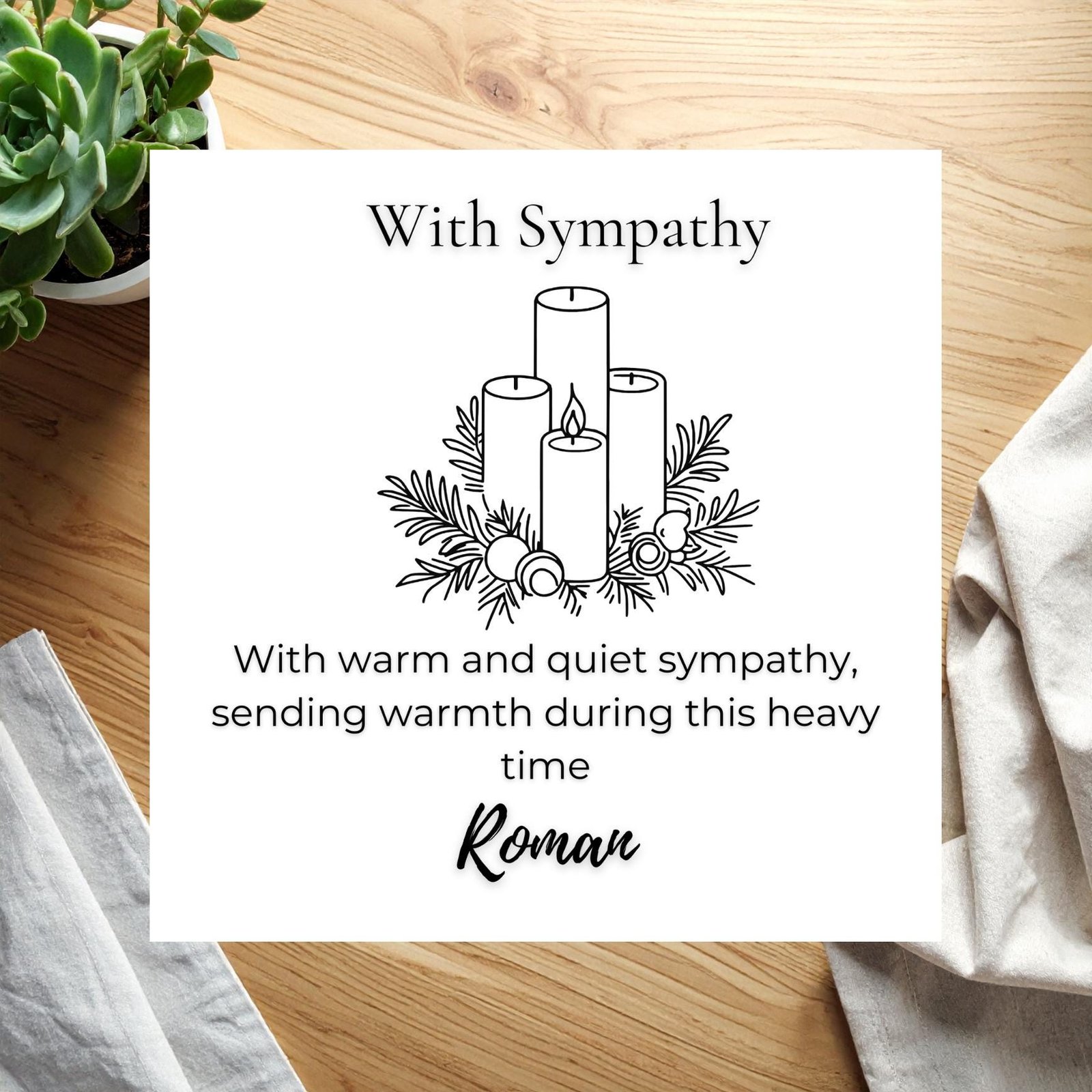 Your card will be created especially to express sympathy, care, and quiet support during a difficult time, with sensitivity, warmth, and thoughtful design.