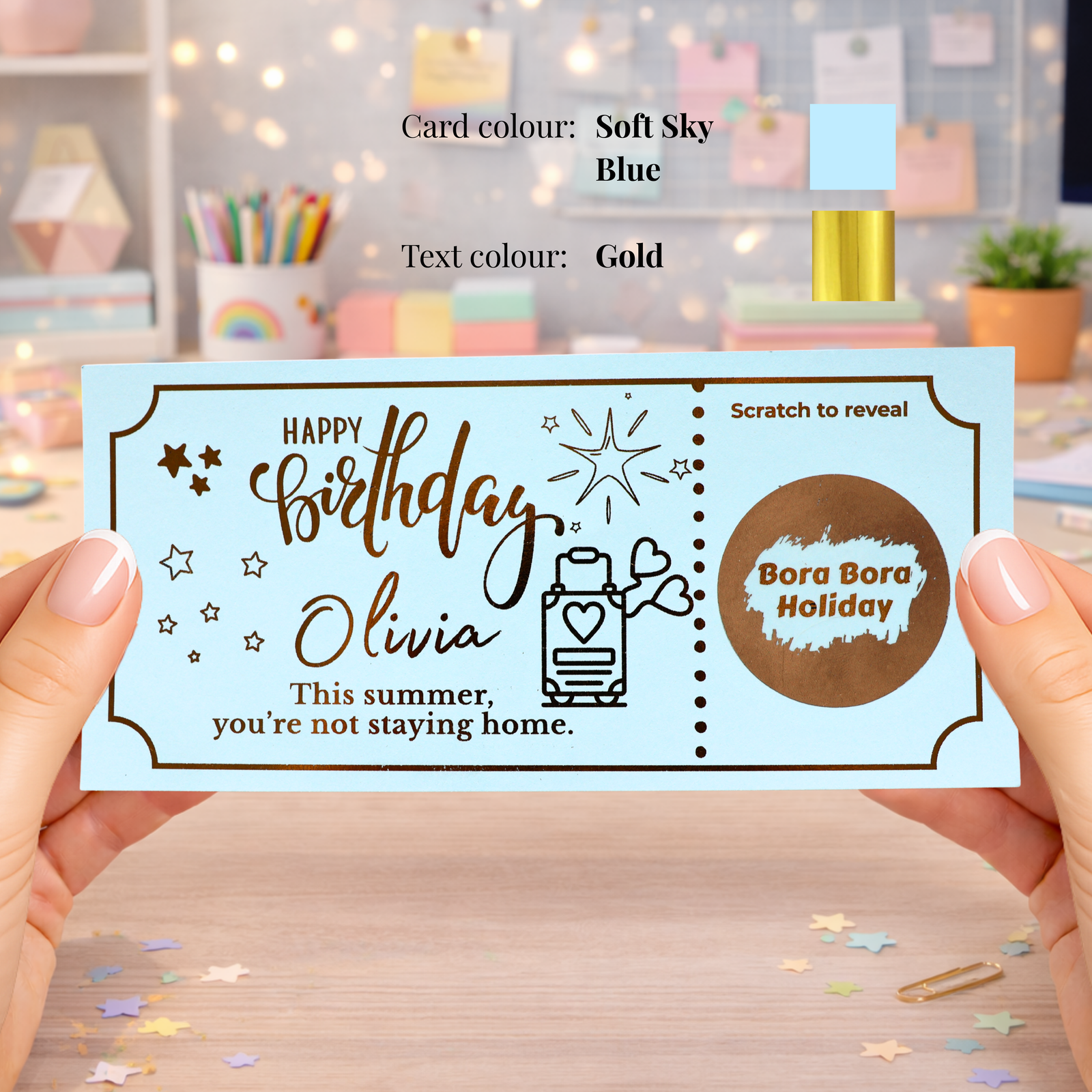 Personalised Birthday Scratch Card Holiday Reveal Gift, Custom Travel Surprise Voucher Ticket, Experience Trip Reveal Birthday Gift