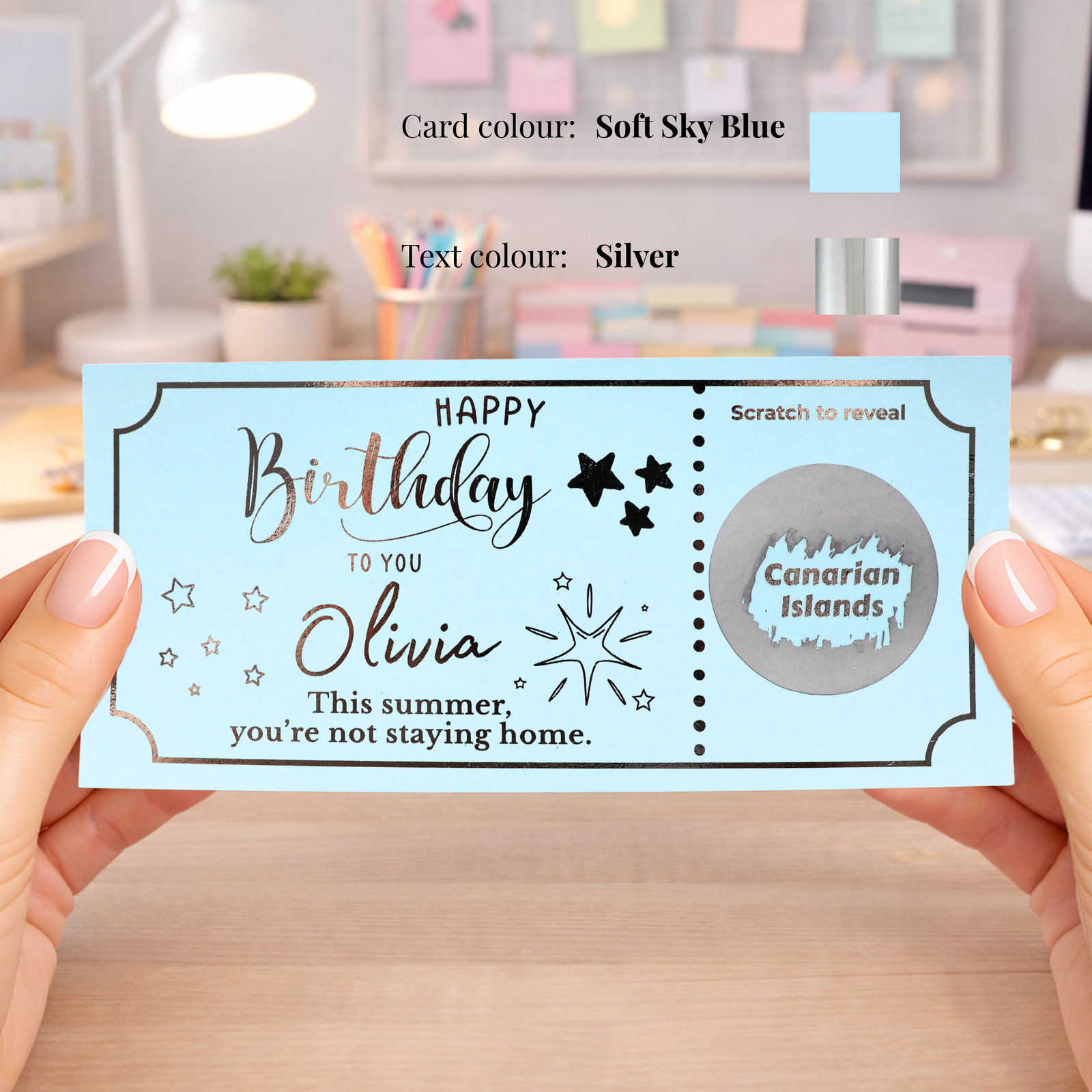 Personalised Birthday Trip Reveal Scratch Card, Surprise Holiday Gift Ticket, Vacation Reveal Card, Travel Surprise Birthday Gift