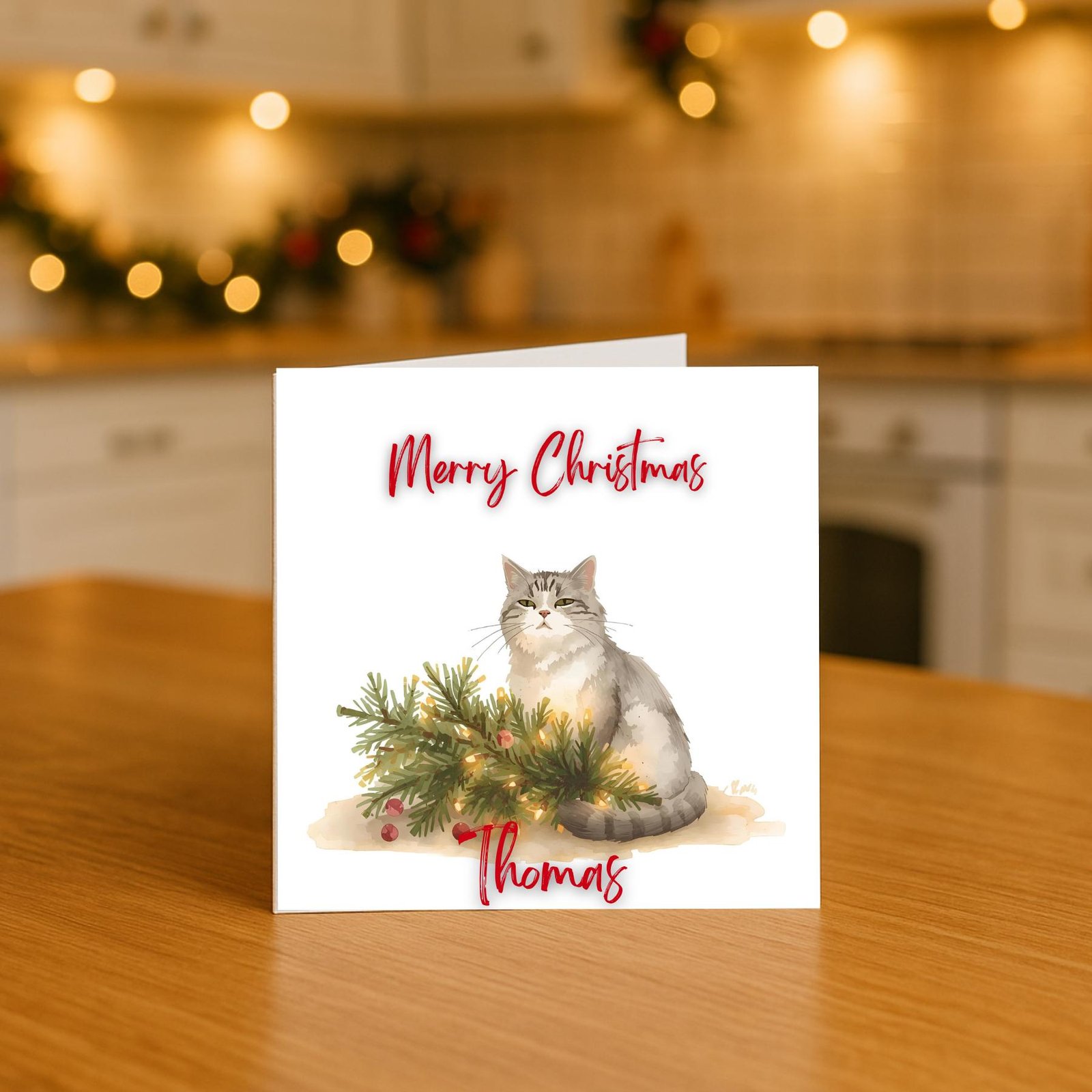 Personalised Cat Christmas Gift Card festive winter scene, cosy holiday unique pet lover gift, warm seasonal greetings