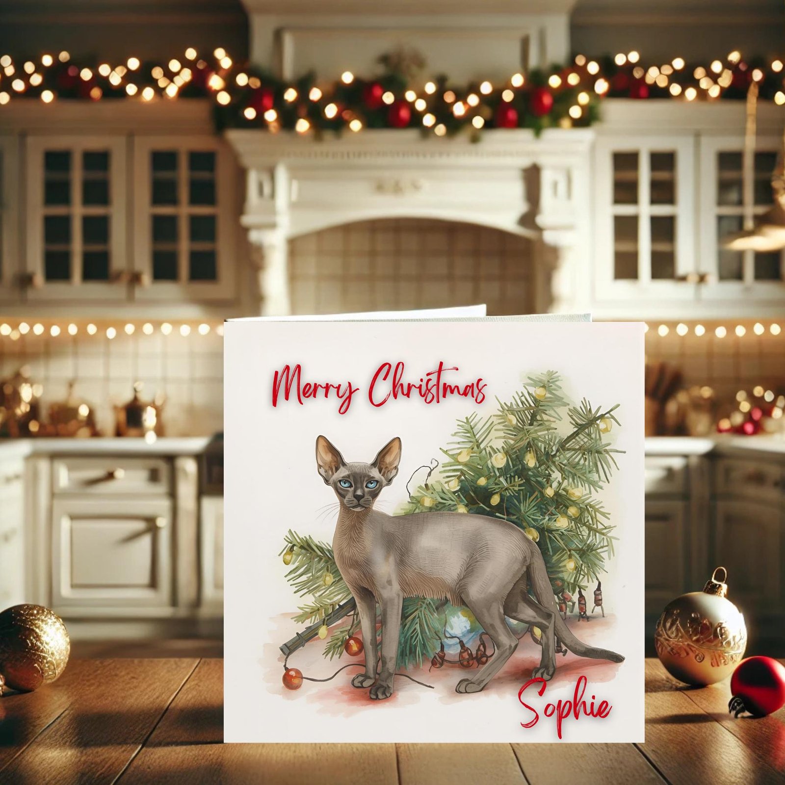 This personalised Christmas Card captures the peaceful charm of the season with a beautifully illustrated Sphynx cat surrounded by soft holiday lights and winter greenery. Professionally printed with care, every card is designed to feel meaningful, warm, and truly personal. It is a lovely way to share joy with family, friends, or any pet lover who appreciates heartfelt moments during the holidays.