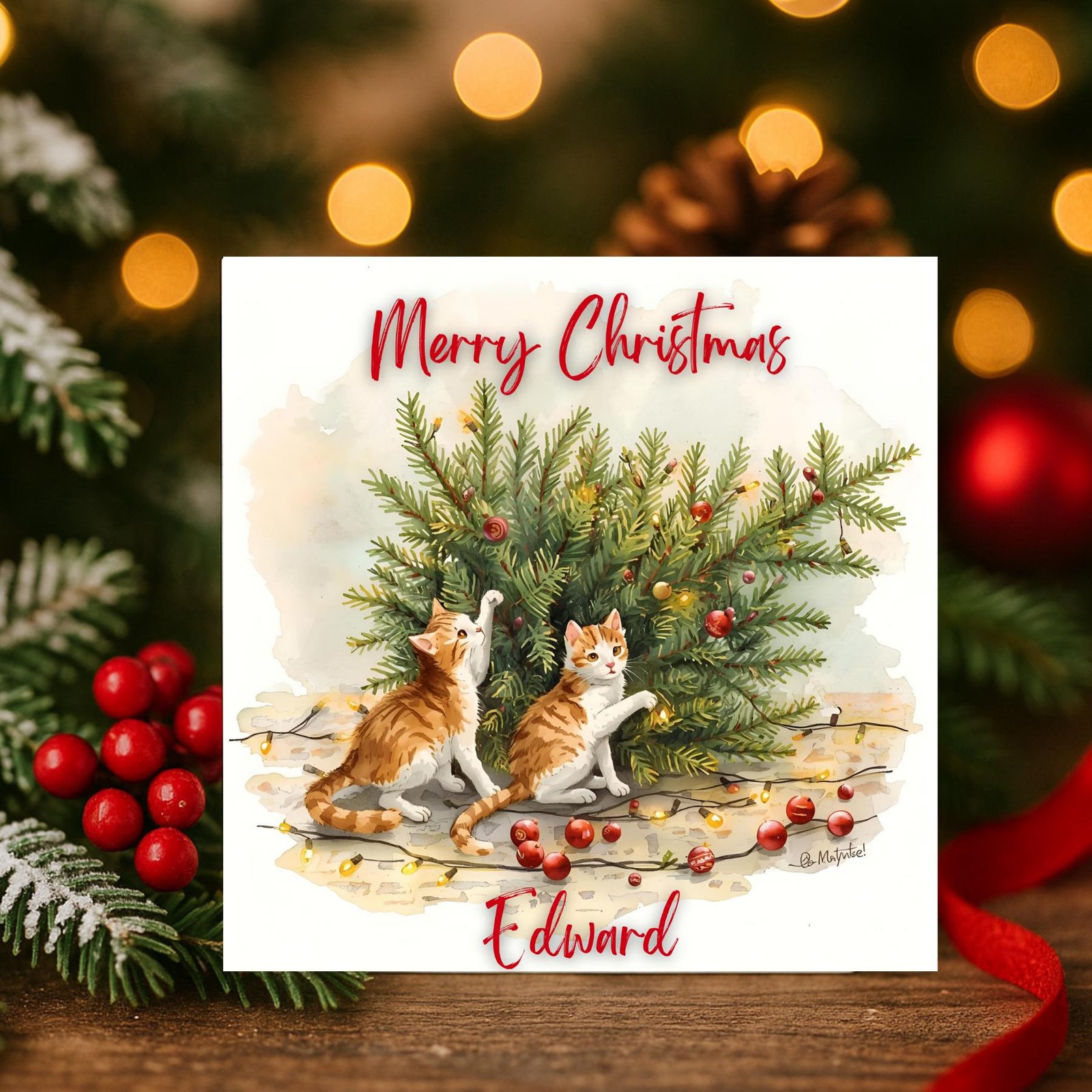 Be the first to review “Personalised Ginger Kittens Christmas Card festive holidays | gift for cat lovers custom name winter scene cosy seasonal surprise”