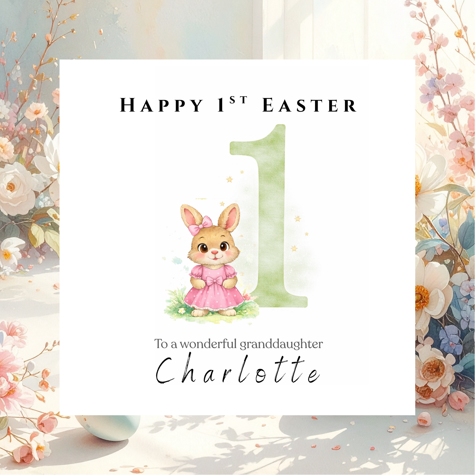 Add a personalised title written exactly how you imagine it. From sweet and simple to warm and celebratory, designed to suit Easter beautifully.