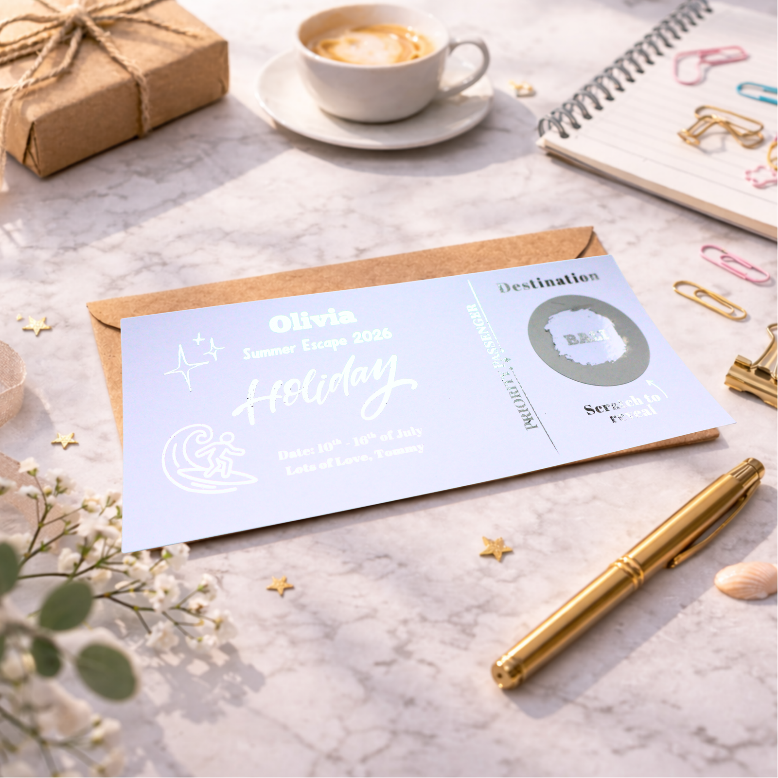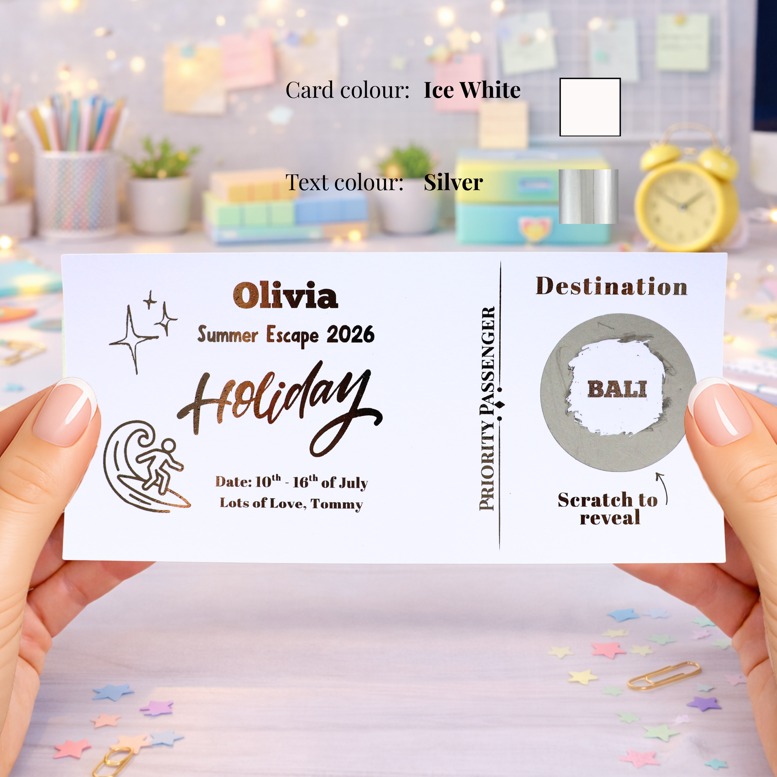 Personalised Holiday Reveal Scratch Card, Surprise Trip Gift Card, Vacation Reveal Ticket, Travel Surprise Gift Voucher Card