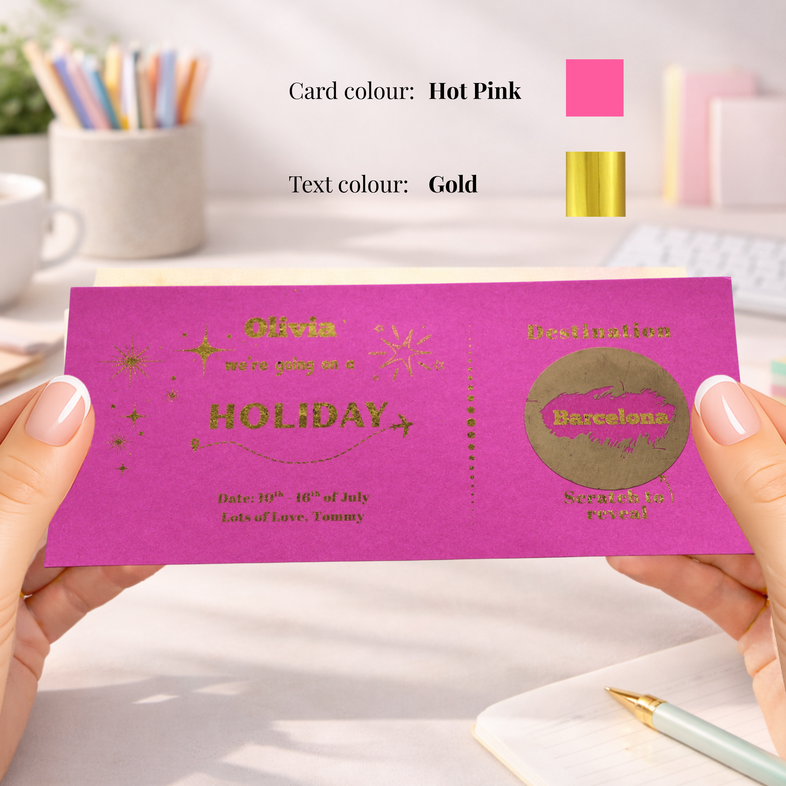 Personalised Holiday Reveal Scratch Card Voucher, Travel Surprise Gift Ticket, Custom Trip Destination Reveal Gift Experience