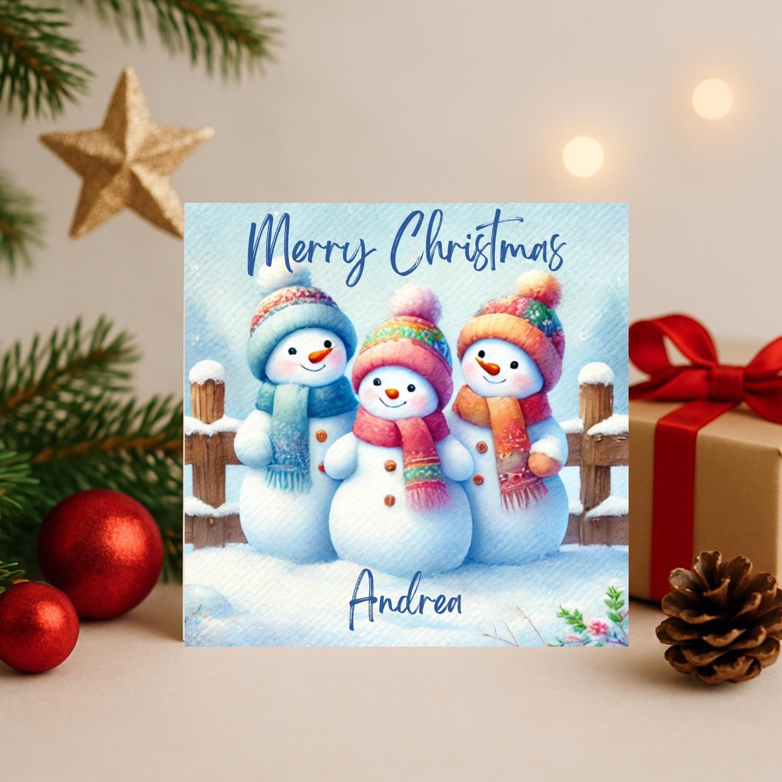 🎄 Personalised Snowman Family Christmas Card – Professionally Printed Winter Greeting – Cute Holiday Card with Name