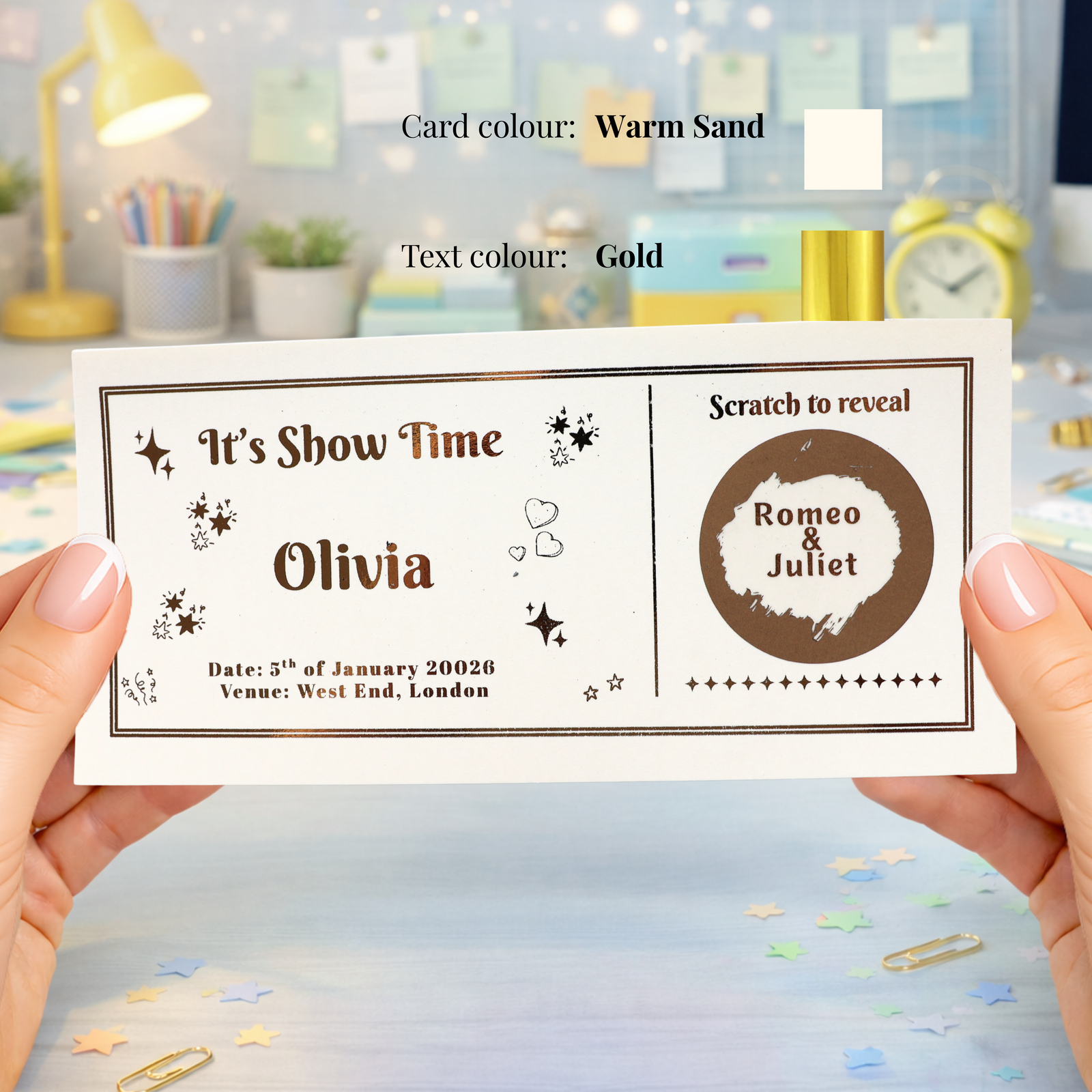 Personalised Theatre Tickets Scratch Card Gift, West End Surprise Ticket Reveal, Experience Gift Voucher Card, Custom Show Ticket