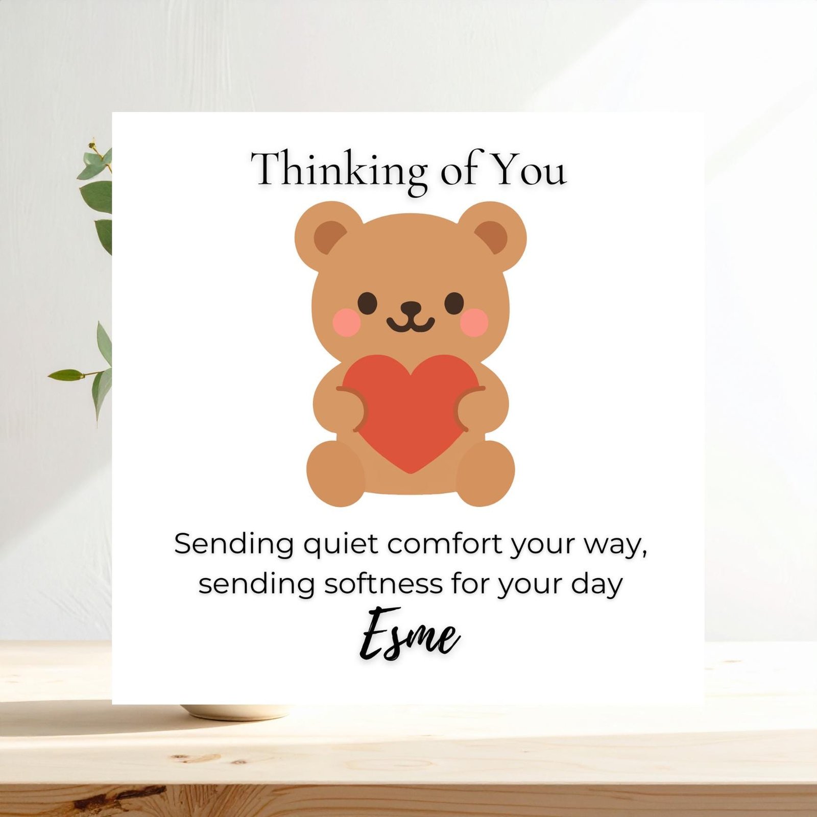 Your card will be created especially to let someone know they are on your mind, whether they are going through a quiet moment, a challenging time, or you simply want to send a gentle reminder that they are cared for. Each design is thoughtful, warm, and lightly humorous, created with kindness and intention.