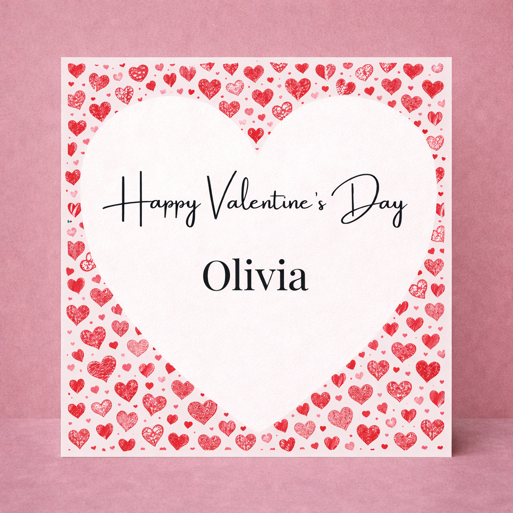 Valentine’s Day Gift Dense Red Heart Pattern Card Personalised Name Romantic Love Card Bold Valentine Design