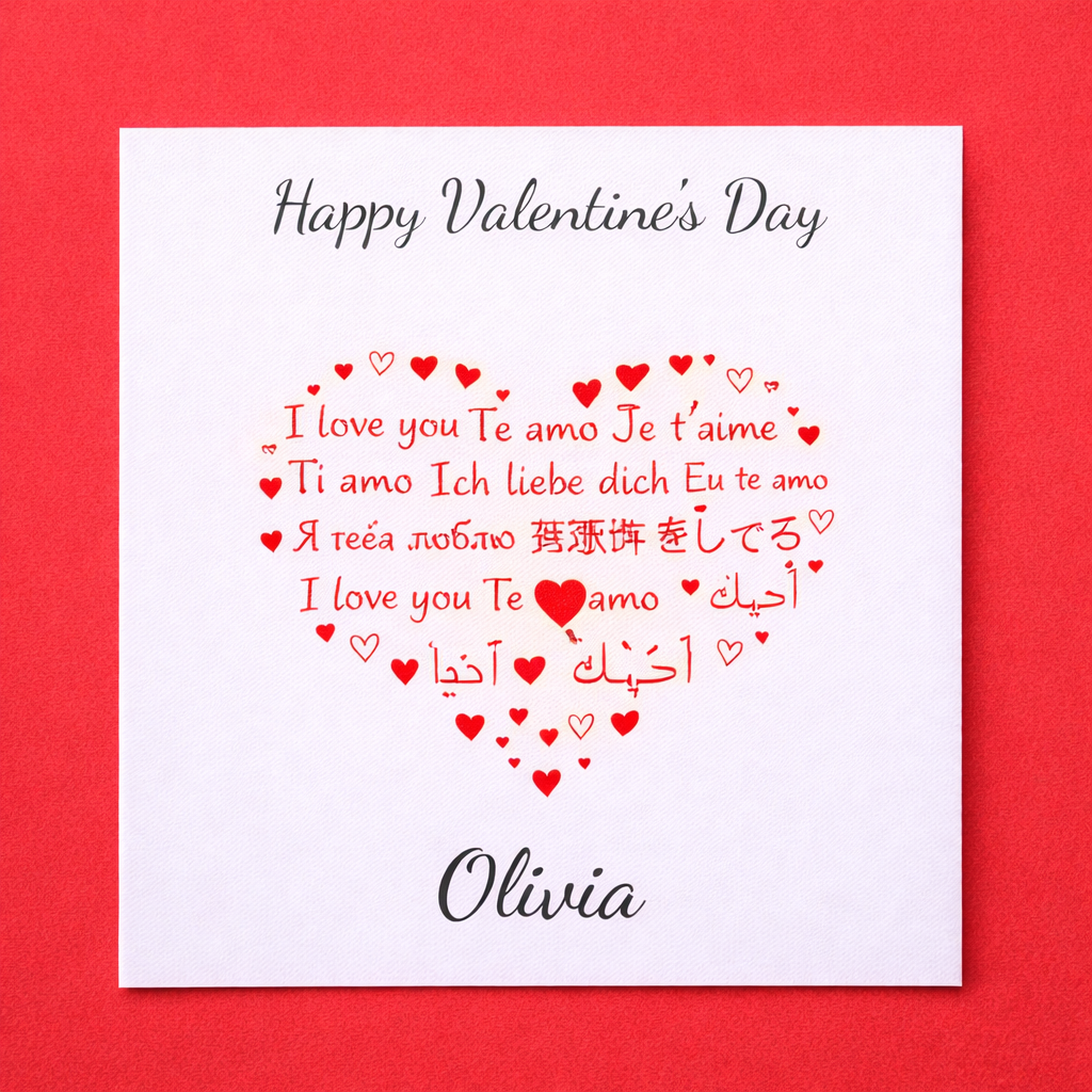 Valentine’s Day Gift Love In Every Language Card Personalised Name Romantic Heart Design Love Card