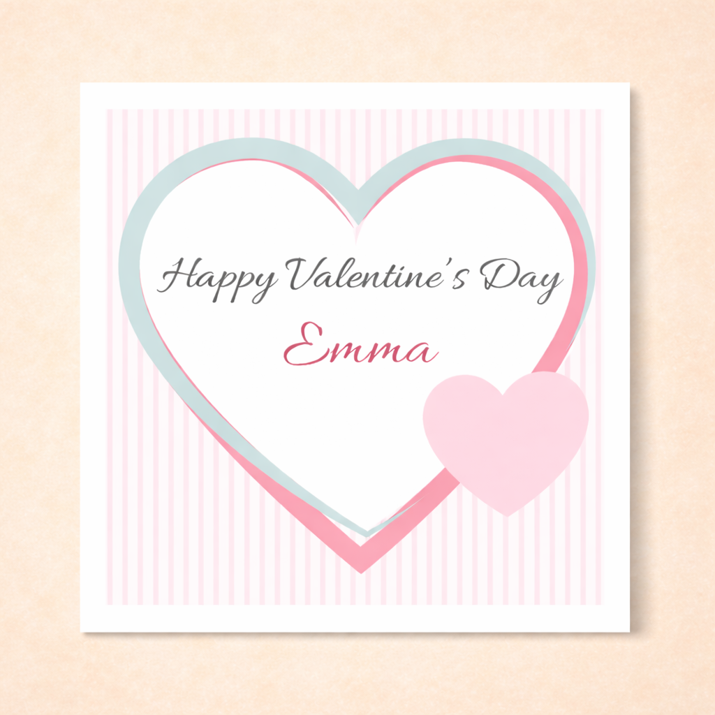 Valentine’s Day Gift Pastel Heart Card Personalised Name Sweet Romantic Love Card Elegant Valentine Design