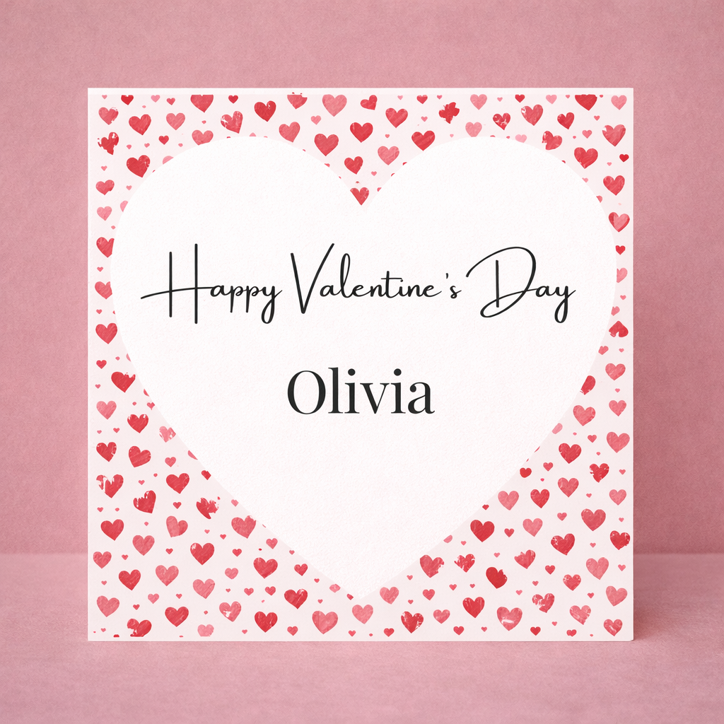 Valentine’s Day Gift Red Heart Pattern Card Personalised Name Romantic Love Card Classic Valentine Design